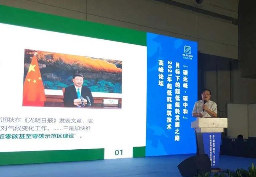 河南省被動(dòng)式超低能耗建筑產(chǎn)業(yè)技術(shù)創(chuàng)新戰(zhàn)略聯(lián)盟理事長(zhǎng),五方建筑科技集團(tuán)董事長(zhǎng)崔國(guó)游做《雙碳目標(biāo)下的河南超低能耗建筑發(fā)展》主旨發(fā)言,提出了建筑領(lǐng)域?qū)崿F(xiàn)碳達(dá)峰的內(nèi)容、方式和技術(shù)路徑,梳理了“雙碳”目標(biāo)、綠色建筑、超低能耗建筑之間的邏輯關(guān)系。